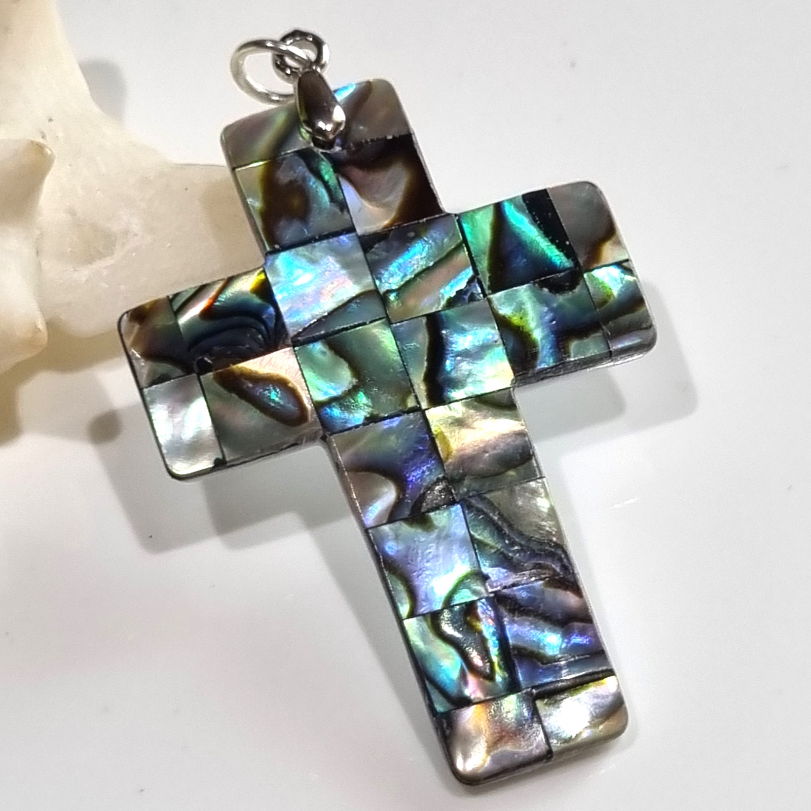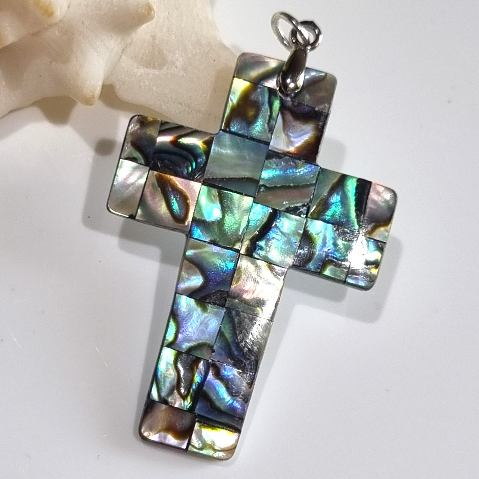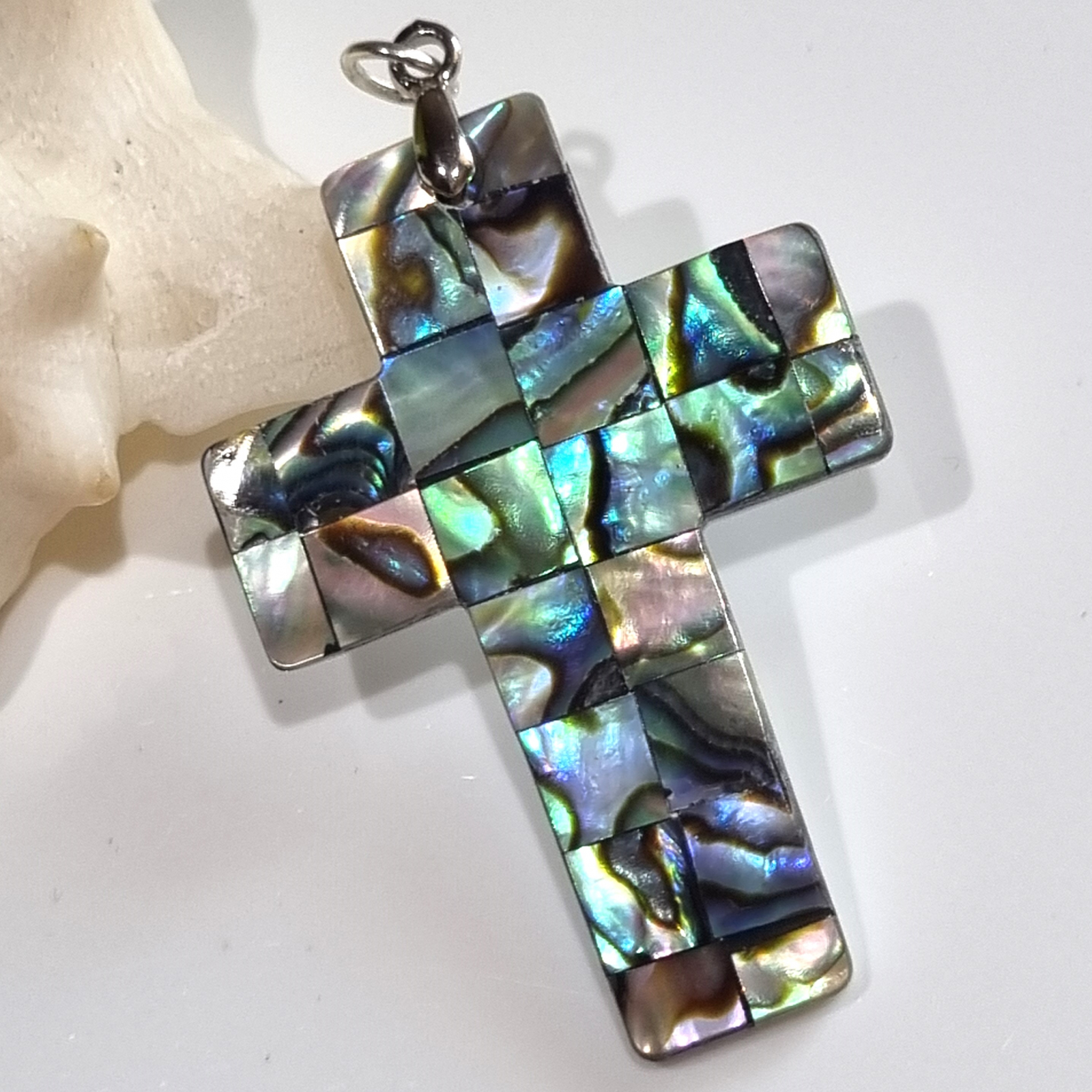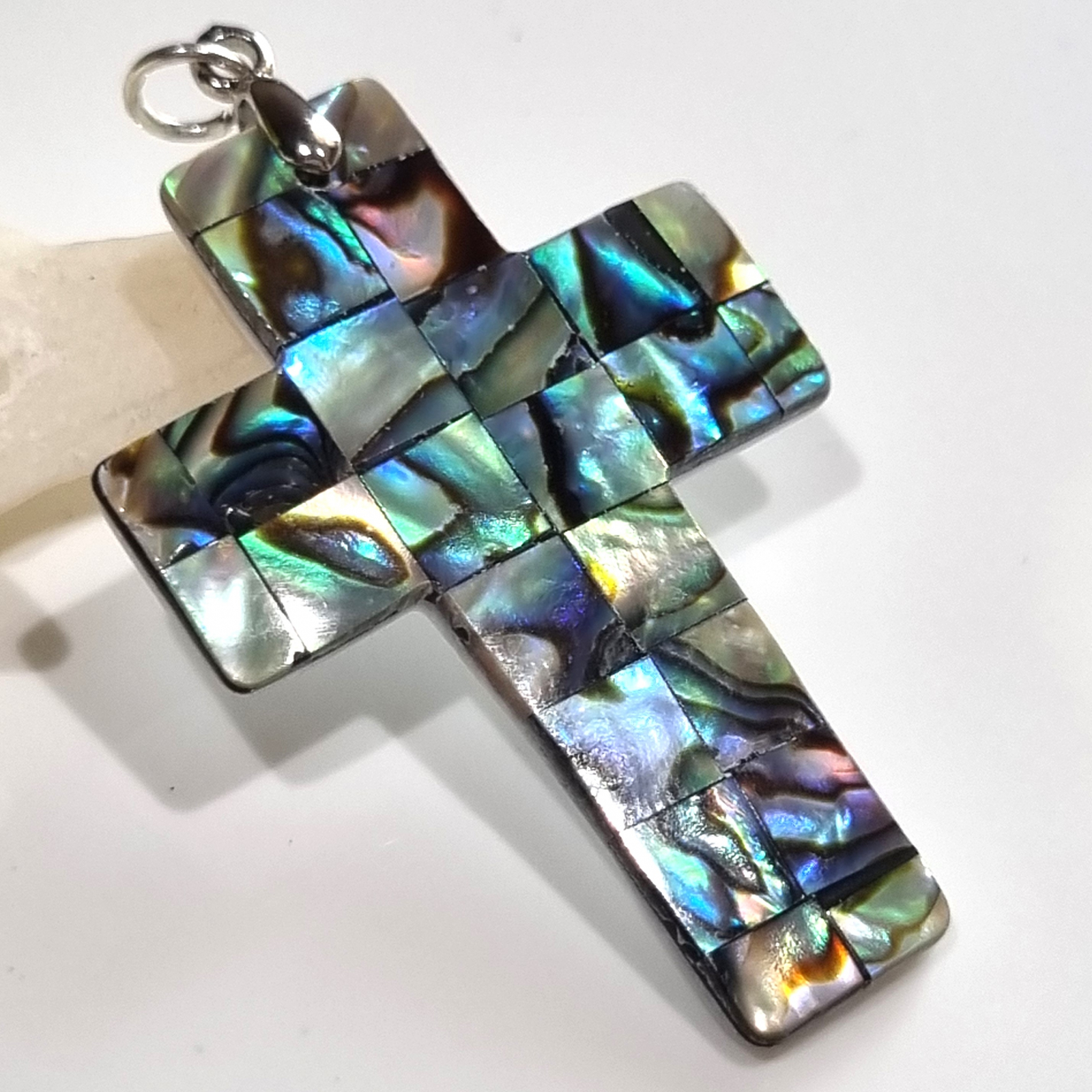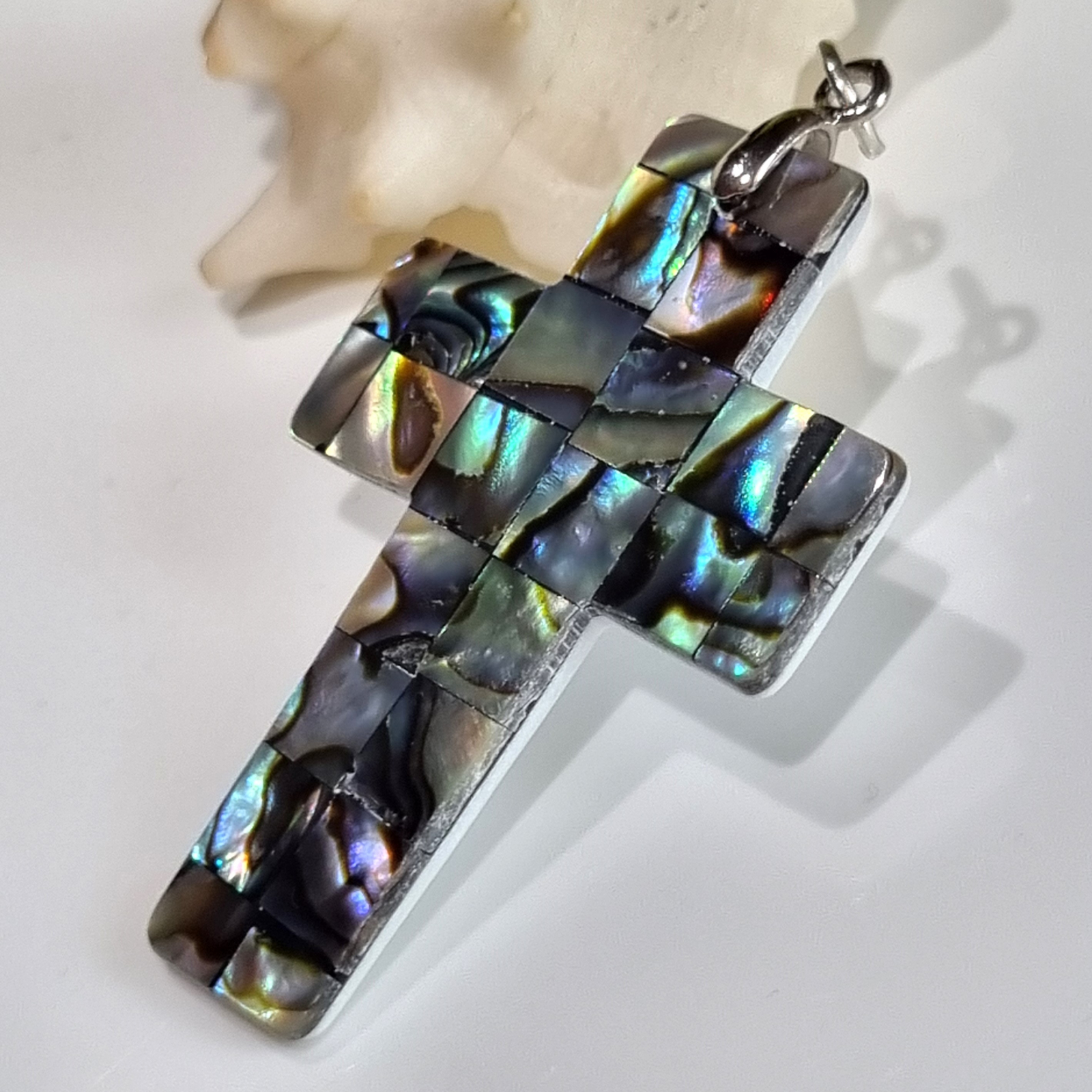 Pandantiv cruce din Paua Shell (scoica Paua Abalone provenita din Australia si considerata un miracol al naturii)
