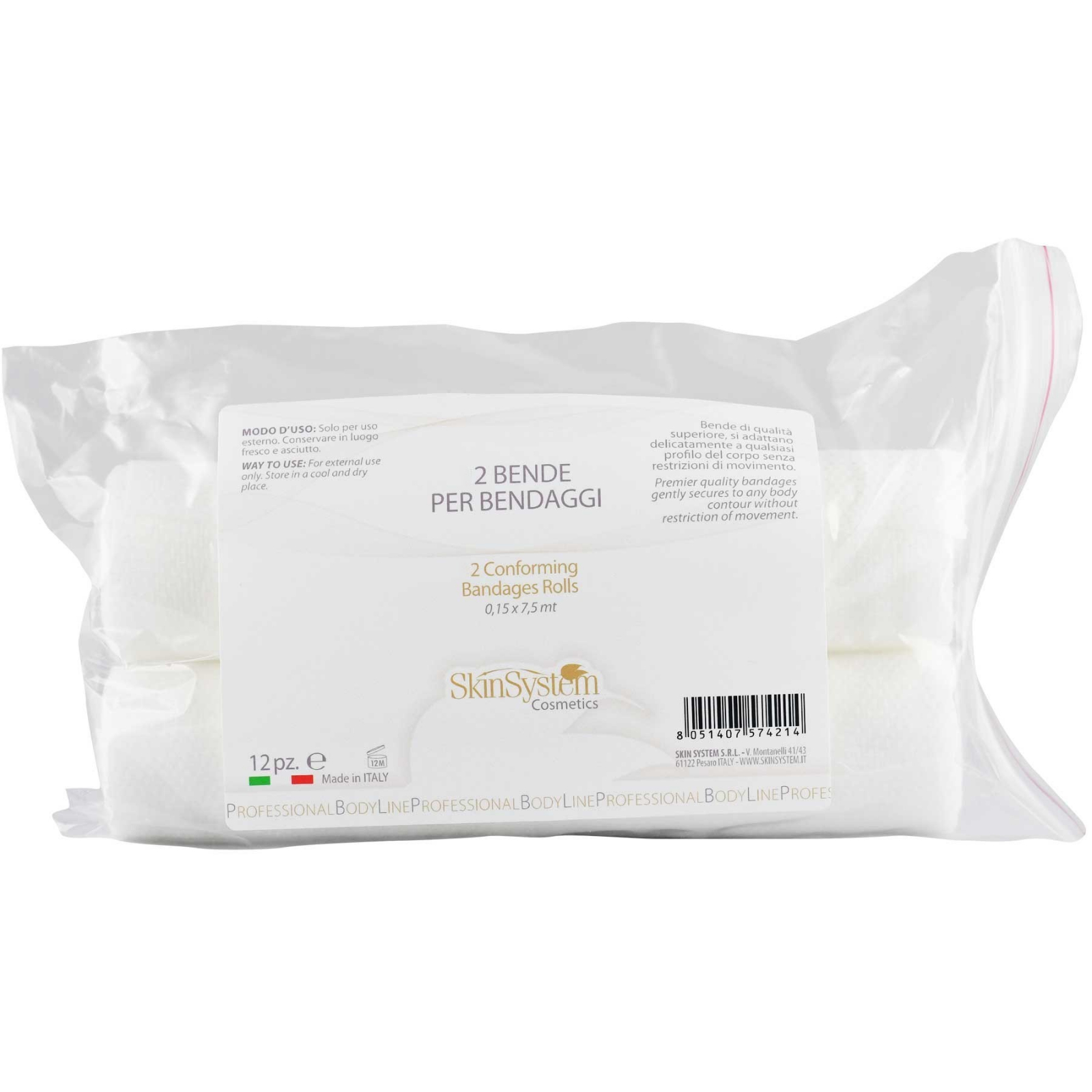 Комплект от 2 превръзки, които могат да се използват с разтворите на Skin System за превръзка. (Антицелулитен разтвор, Лимфодренажен разтвор, Тонизиращ разтвор).